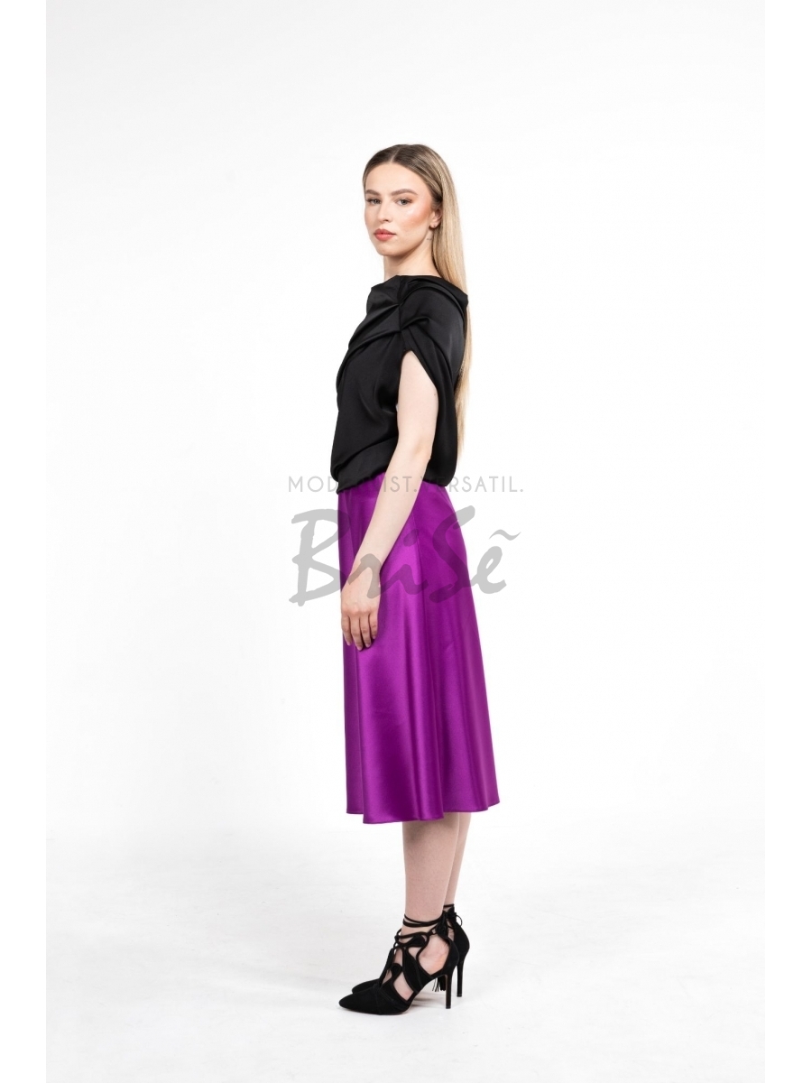 Fusta Lyra fucsia midi din satin