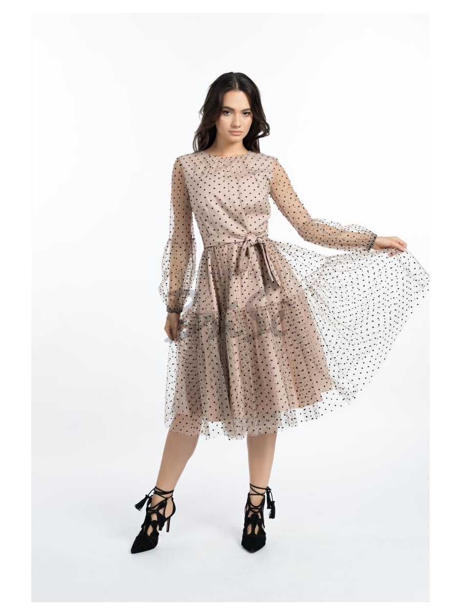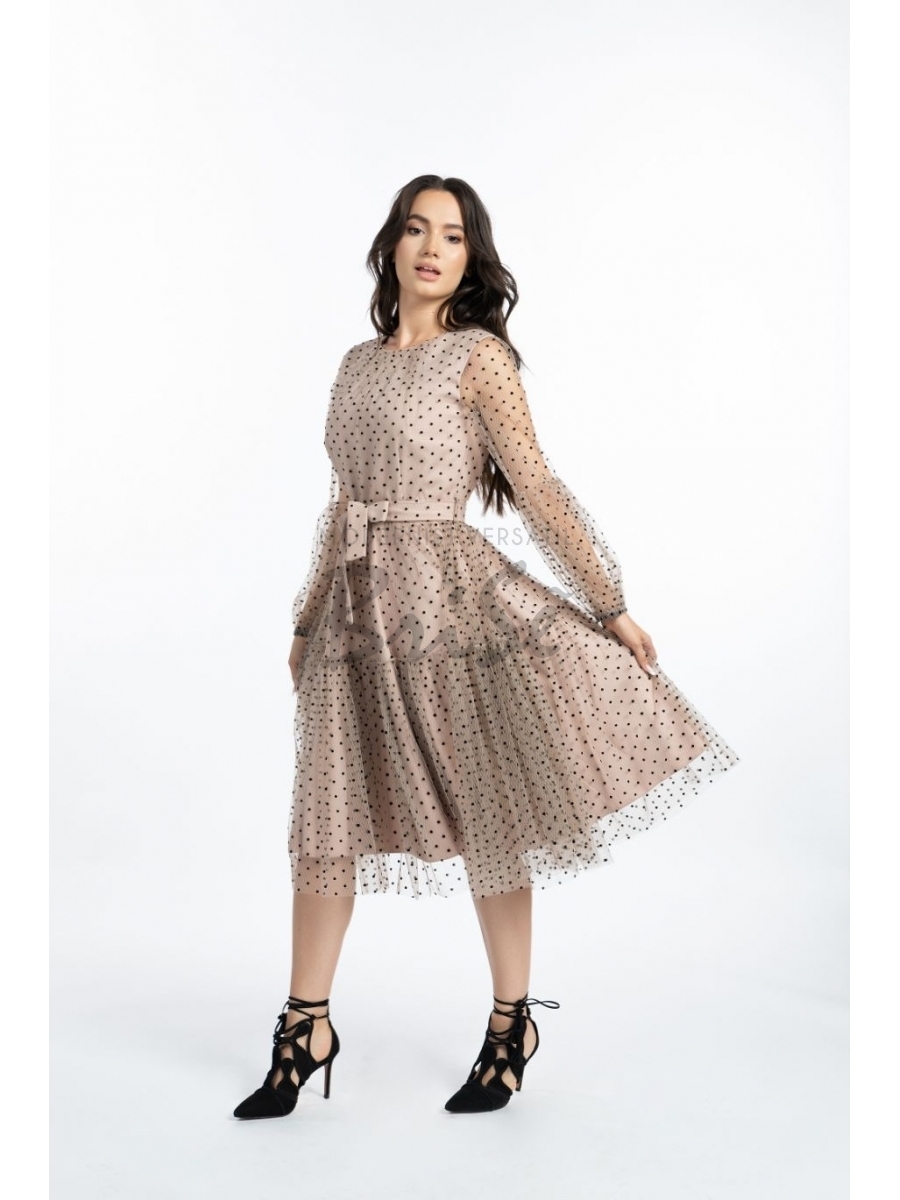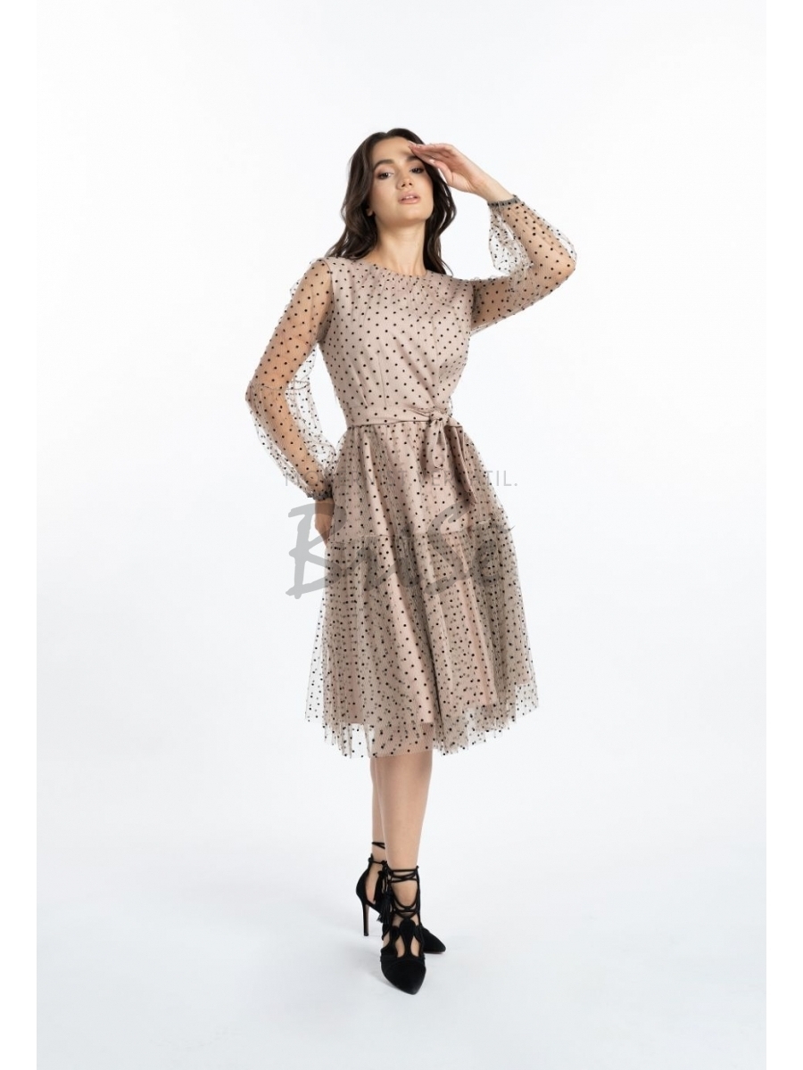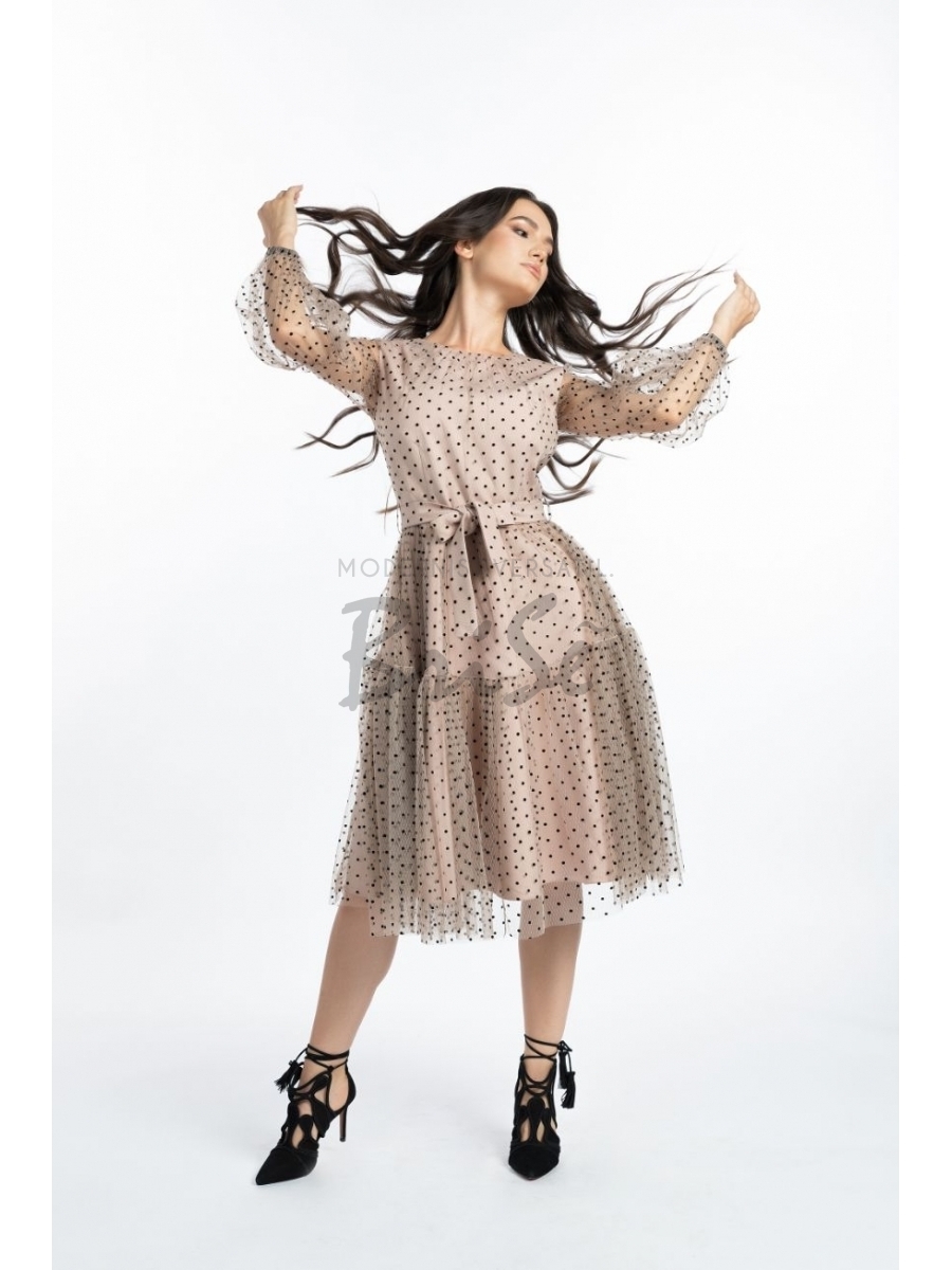 Rochie Felicia roz cu tull hexagonal